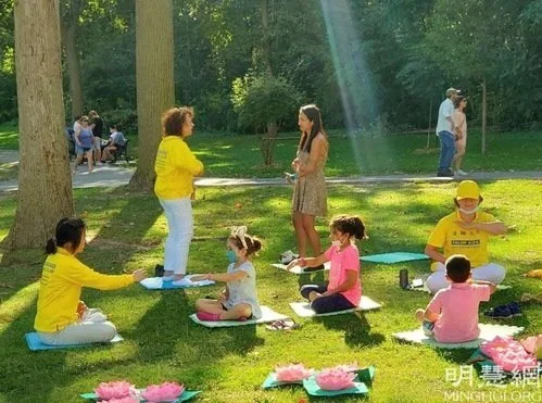 Falun Gong practitioners teaching the exercises to members of the public. (courtesy of Minghui.org)